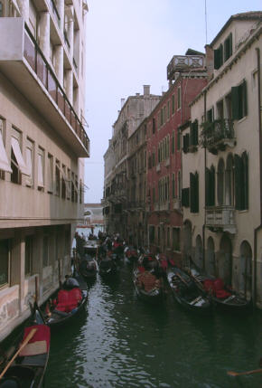 In Venice, we knew we would have to take a waterbus, or vaporetto, to get close to our hotel. I knew that Venice had canals, but didn’t realize that there were no roads, which meant no cars, buses, taxis, scooters, bicycles or rollerskaters. VERY quiet, compared to where we’ve been so far. The Grand Canal circles the city and is full of vaporettos, water taxis, gondolas and small boats necessary to get form here to there. "Streets" can be walked and some canals have small bridges over them, connecting the many islands that make up Venice.